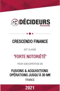 Crescendo finance est classé « forte notoriété » dans la catégorie M&A – deals jusqu’à 30m€ – Classement 2021 Banque d’affaires